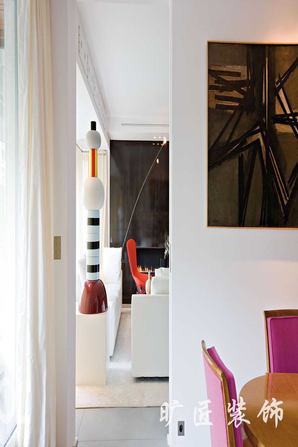 客廳是白色和深色兩個(gè)比較差異的顏色,燈光為暖色,打造了溫馨的氛圍。地板是兩者之間的過(guò)渡色,深色的家具,顯得十分沉穩(wěn)。客廳的裝飾擺件都比較偏歐美風(fēng),老式電話機(jī),小臺(tái)燈,這些具有鮮明特色的物件都突出了房間的風(fēng)格。客廳旁邊就是餐廳,深木色的圓桌,寓意著家的團(tuán)團(tuán)圓圓。單獨(dú)的吊燈,在空間上做了劃分。餐廳的照片墻,可以換成家人的照片,為家里增添了一些暖意。客廳的酒柜也充滿了復(fù)古特色。地面在瓷磚上做了處理,一些小細(xì)節(jié)也充滿了風(fēng)格特色。
