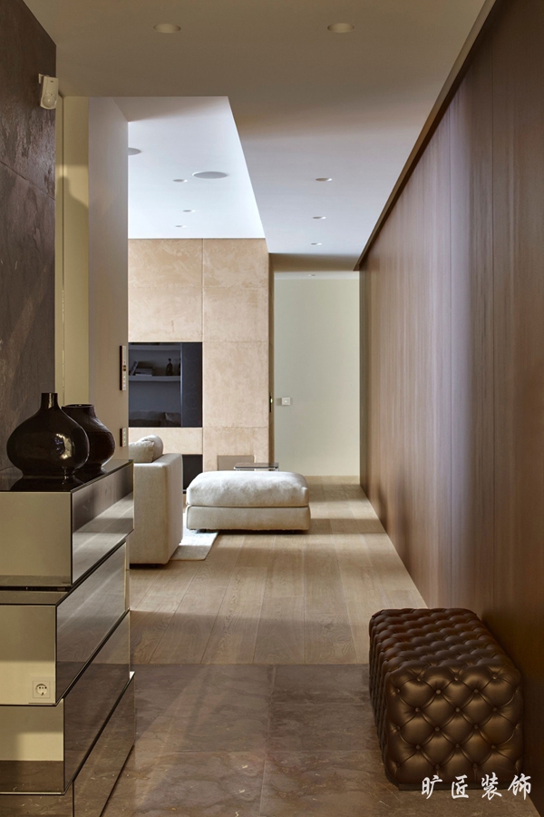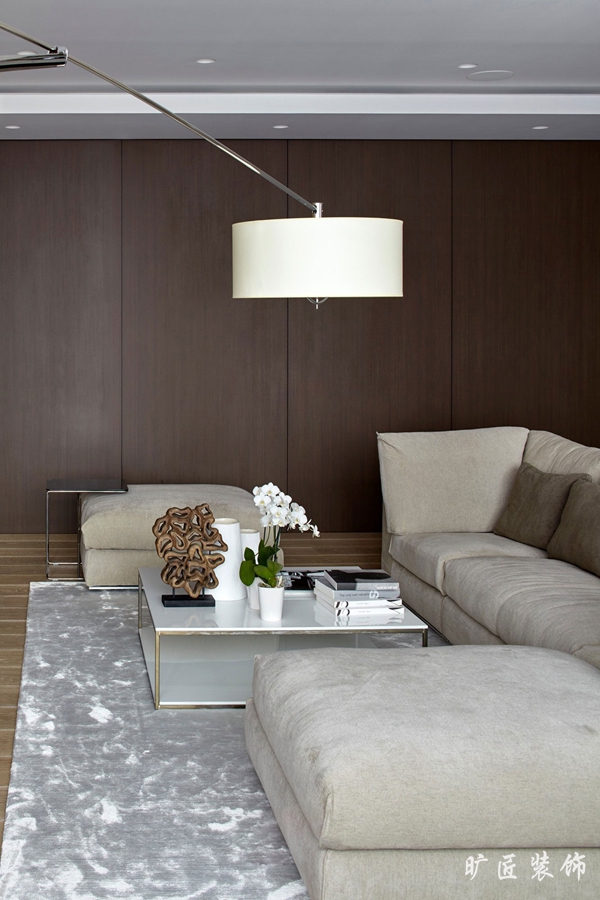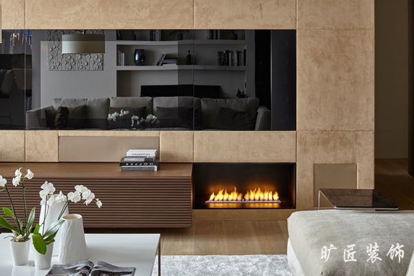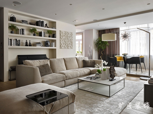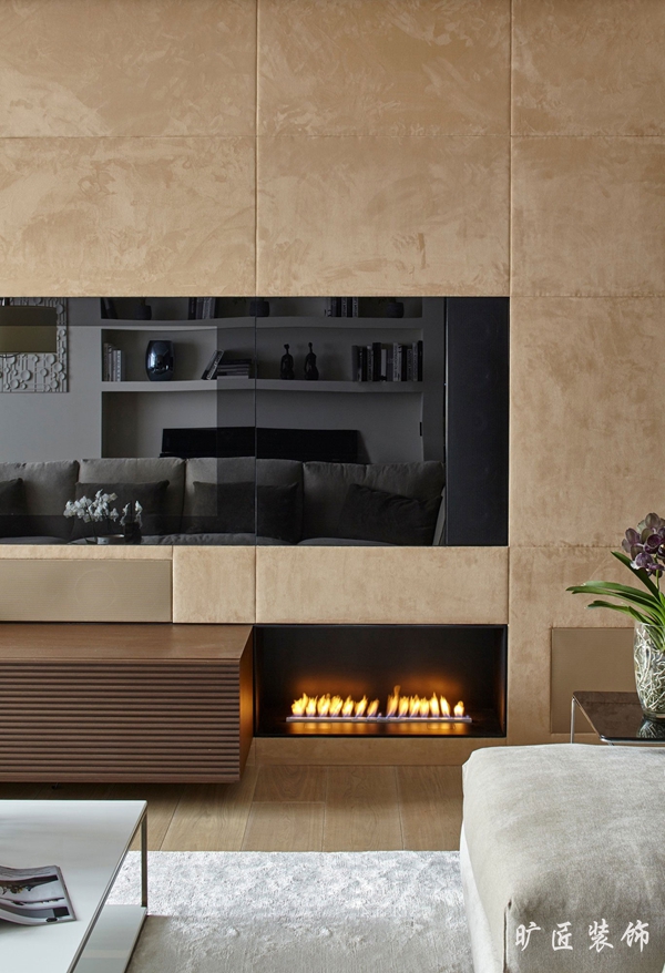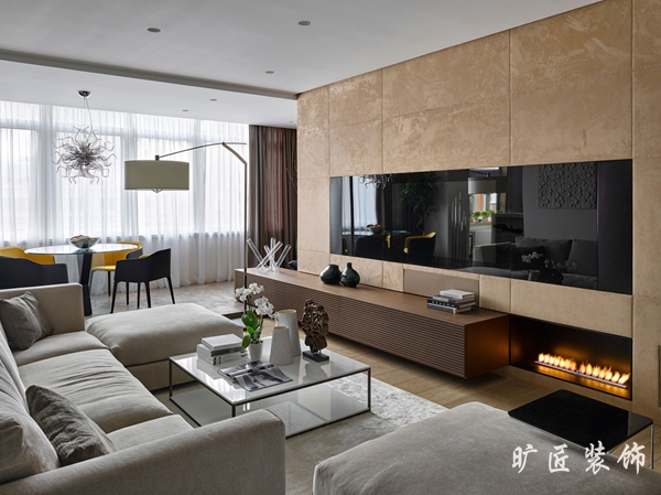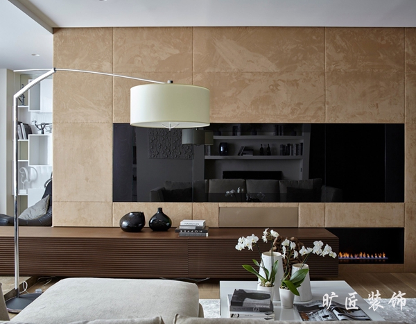 現代簡約風格一度成為現在男女老少都喜歡的一種典型裝修風格,清晰明亮的色調,簡單實用的家居擺設,在節奏日益加快的現代生活中無疑更受追捧。我們可以看到下面這一組效果圖中,白色的墻面和柔和的米色沙發完美地結合在一起,淺黃色的電視背景絨面墻和整個居室環境相得益彰,嵌入式的電視墻讓整個背景墻面看起來自然地融入其中。壁爐的處理讓居室多了一點靈動和明亮的感覺,簡約中又加了一絲俏皮。