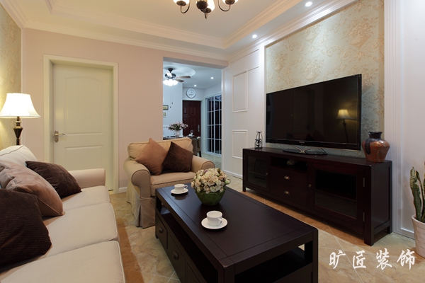 這是一個充滿濃濃北美風情的浪漫小屋,我們可以感受到在這個不大的空間里從各個角落散發出來的浪漫的氣息,業主一定是一對有情懷講求生活品質的小年輕吧~~餐廳的處理非常巧妙,充分利用了墻角的空間,設計出L形的座椅結構。天花板上復古的燈飾給整個餐廳平添了一份藝術格調。淺棕色的沙發,和咖啡色的茶幾、電視柜的顏色搭配顯得剛剛好,壁紙和墻面的掛圖打破了沉悶,讓整個空間頓時有了生氣。廚房和餐廳的接洽處理得游刃有余,動線合理,為浪漫生活增添了一些實在的煙火氣,沒錯,這就是煙火里的人生!