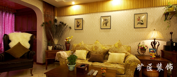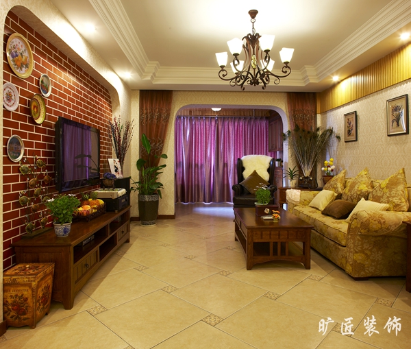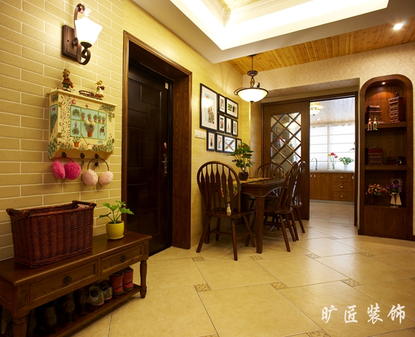 這是一個溫馨的三口之家。設計師為了令一所住宅增添家的情趣與感覺,處處用細節去點綴,令空間靈動、溫暖,充滿了樂趣。仿古磚、復合地板、墻紙、歐美燈飾的使用,又增添了一些玄關處木工做的酒柜兼具了實用性和裝飾性,每一處的裝飾都非刻意打造但卻處處融洽、自然。