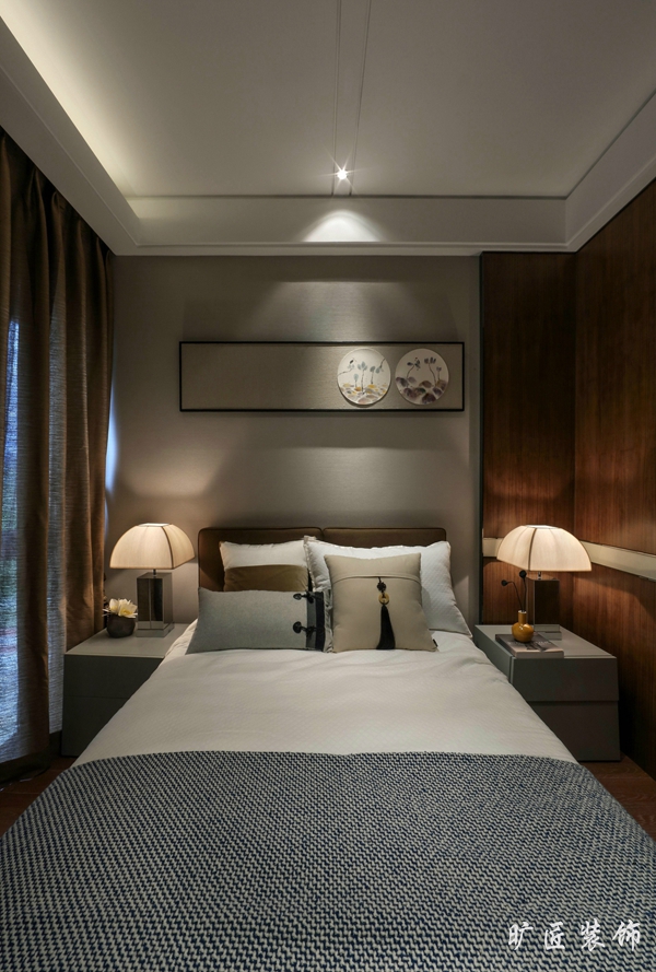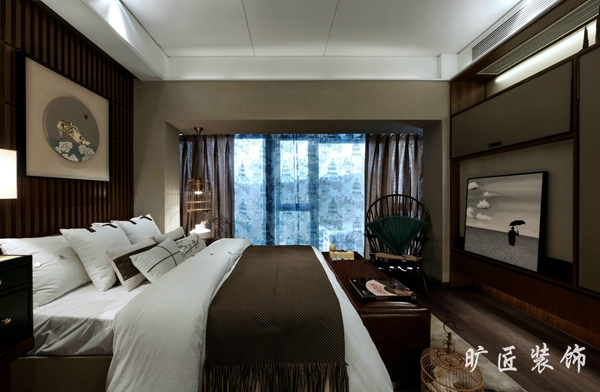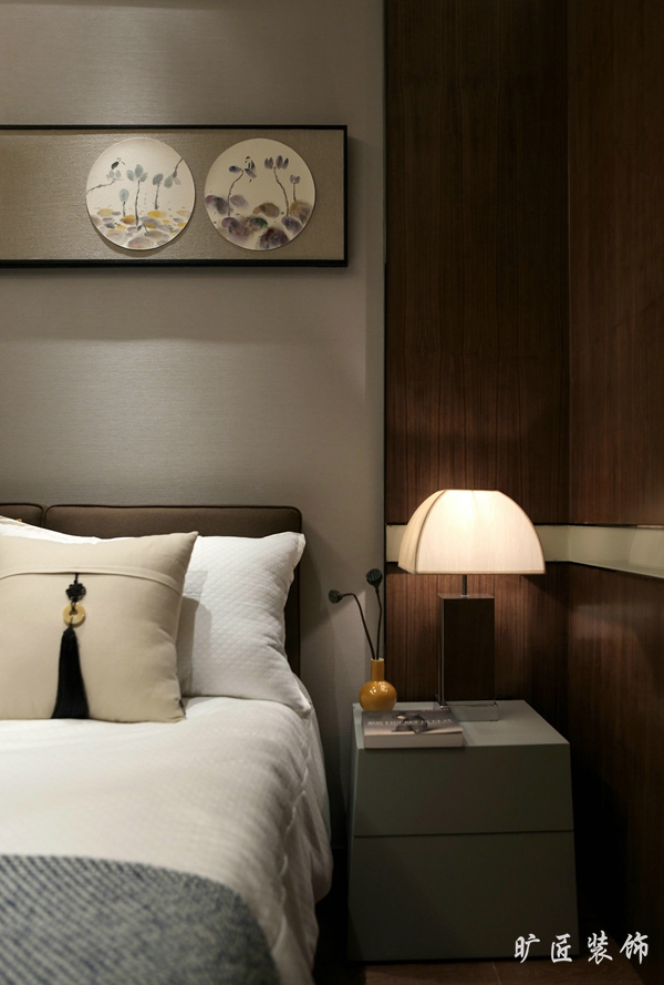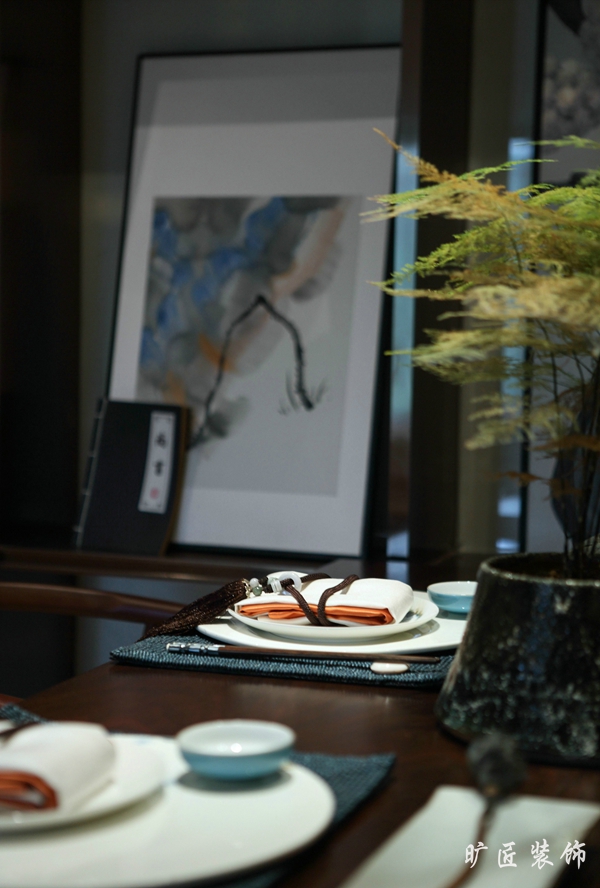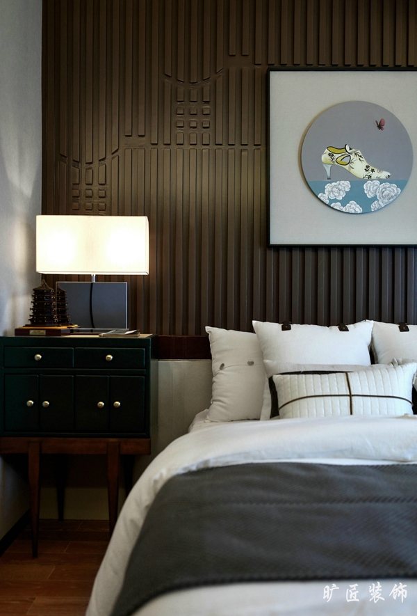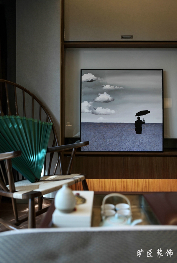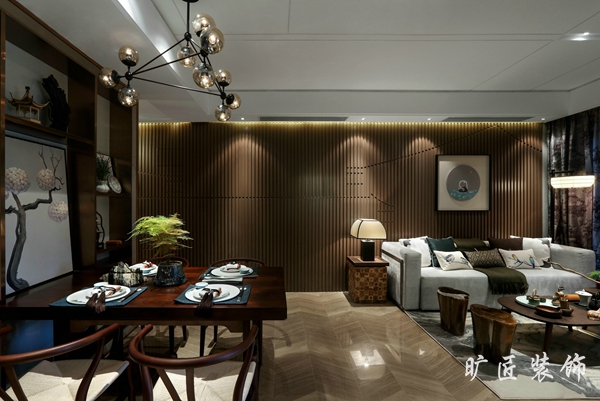 亦古典,亦現(xiàn)代,亦中式,亦西式……這是一所將傳統(tǒng)中式風(fēng)格元素和現(xiàn)代時(shí)尚元素結(jié)合得恰到好處的新中式居室。整個(gè)空間木頭材質(zhì)的使用率是極高的,我們幾乎在每一間每一處都能看到木頭。當(dāng)然,木頭作為中式的基本元素出鏡率這么頻繁是毋庸置疑的,因?yàn)閭鹘y(tǒng)的中式中,木頭就是其表現(xiàn)的載體。再看整體氛圍,大到背景墻面、茶幾桌椅,小到亭子、鳥籠、竹椅、折扇、寶塔、竹簡(jiǎn)、花鳥等小擺件,無(wú)不彰顯主人對(duì)中國(guó)傳統(tǒng)文化的向往和熱愛(ài),并愿在煙火人間里靜靜享受中國(guó)文化的熏陶、滌蕩。新中式,除了傳統(tǒng)的中式元素外,現(xiàn)代的信息也像活潑的音符隨處跳躍著。餐廳上方的幾何形狀的燈具、掛畫、床頭燈、藝術(shù)擺件,古典與現(xiàn)代的碰撞,主人并不是一個(gè)頑固不化的人,他會(huì)同時(shí)吸收、兼并、融合一些時(shí)尚的、西式的、精致的元素,完美地打造屬于他的一片小天地。