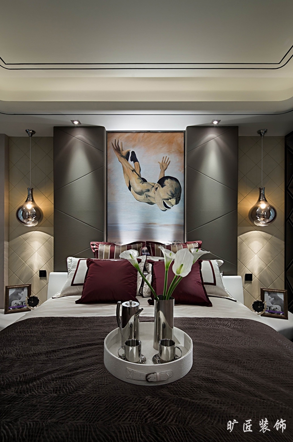 現代與時尚并沒有給人以距離感。它是親和的,它也是舒適的。這間居室不僅凝聚了設計師們新銳的設計眼光和獨到的設計思想,室內空間設計師精心設計的陳列品,如家具、燈飾和掛件,陳列著各種精致的時尚潮流物件,這些物件與現代的設計在恰當的空間邂逅,許多家居設計擺件其新穎的構思和奇特的外形,更是成為設計潮流的價值取向。設計師對時尚元素準確的把握、運用和組合。一個具有引領時尚潮流深后文化底蘊的同時,有兼具現在、時尚的樣板空間。在傳達尊貴大氣的同時,讓人切實地感受時尚的人文氣息。