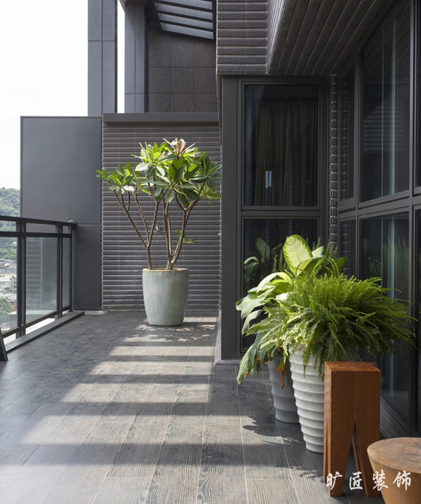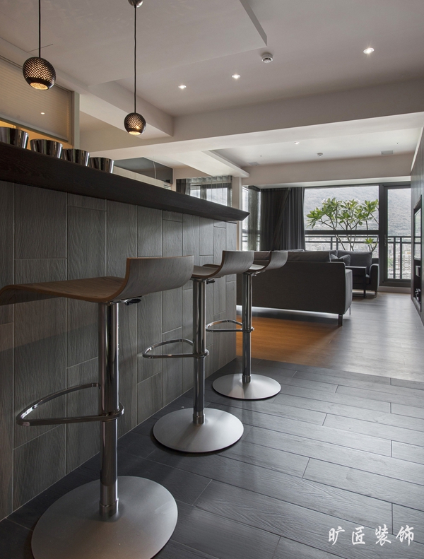 我們經常會聽到人們用高冷來形容某一個人,其實它并不見得就是一個貶義詞,至少說明這個人他有著別樣的氣質。今天這組案例圖用高冷來形容一點也不為過,在這間現代感十足的居室里,大到墻面、地面、天花板及家具,小到一盞燈、一個器皿,都給人通透、極致、簡單的感覺。整體色調以灰色為主,灰色的墻面、灰色的沙發,搭配淺棕色木地板和褐色餐桌,顏色的處理上自然、得體。廚房是一個家最溫暖最有人情味的地方,在這里我們看到了一抹粉紅和淡淡的果綠色,還原了廚房該有的溫馨和生活氣,如此匠心獨具的設計巧妙地打破了整體灰色空間帶來的沉悶感。如果累了,不妨走出去,看看遠方,在現代居室中感受久違的鳥語花香。