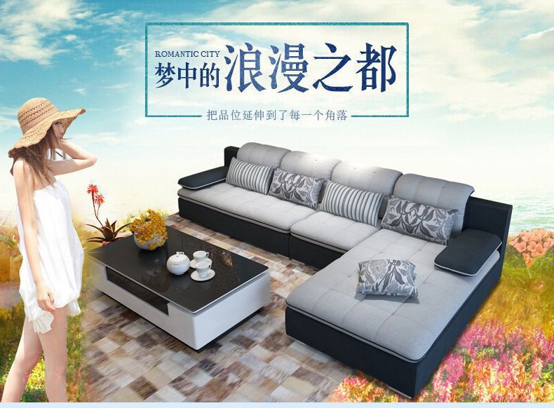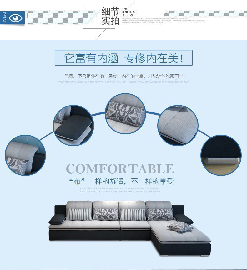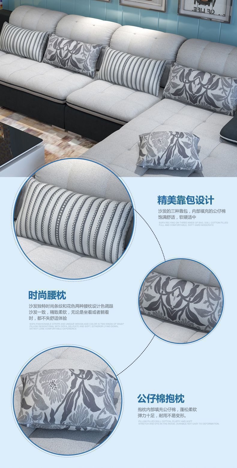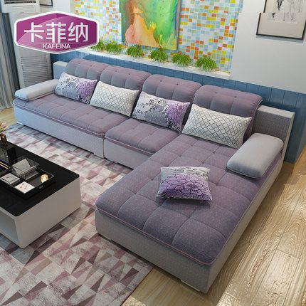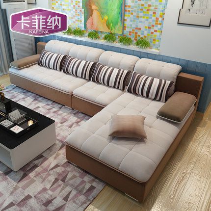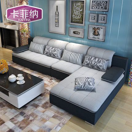 卡菲納簡約現(xiàn)代布藝沙發(fā)大小戶型客廳家具轉(zhuǎn)角L型可拆洗組合沙發(fā)