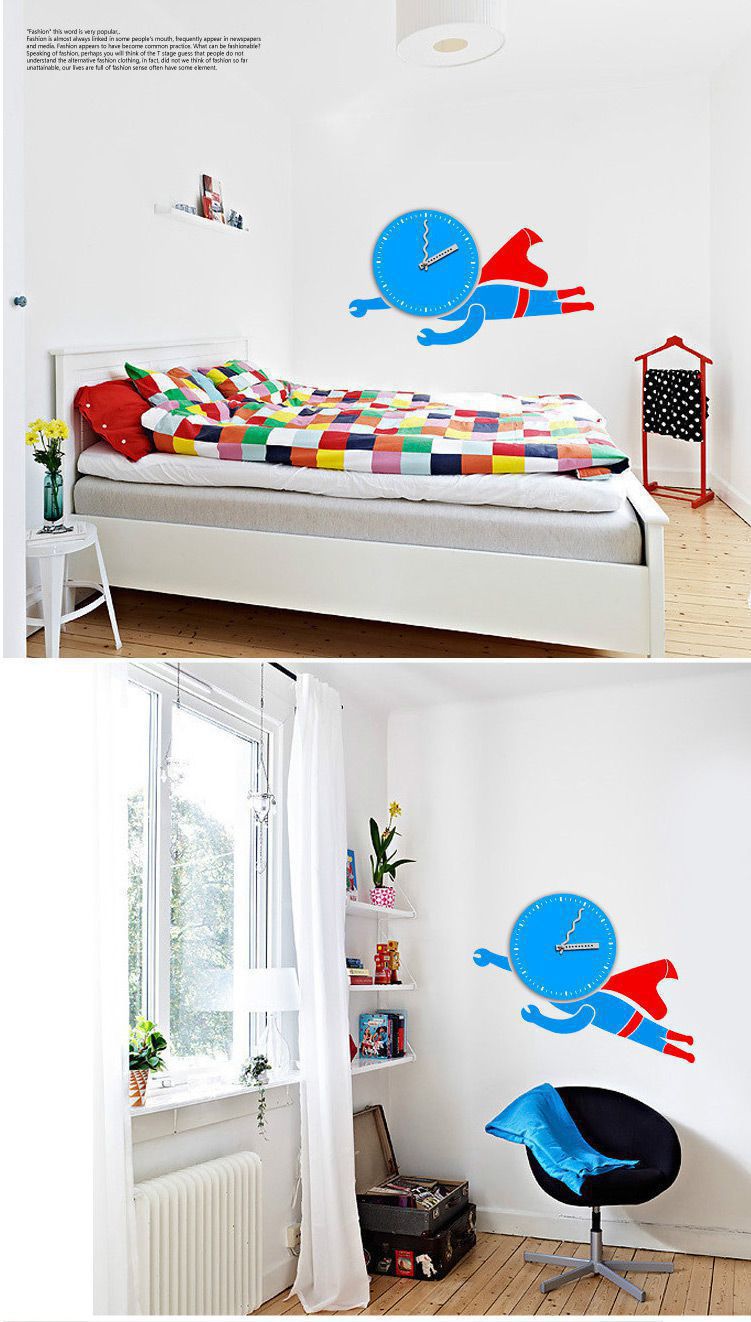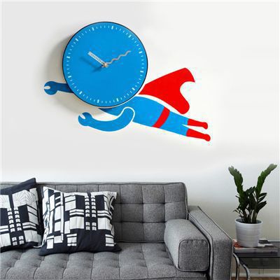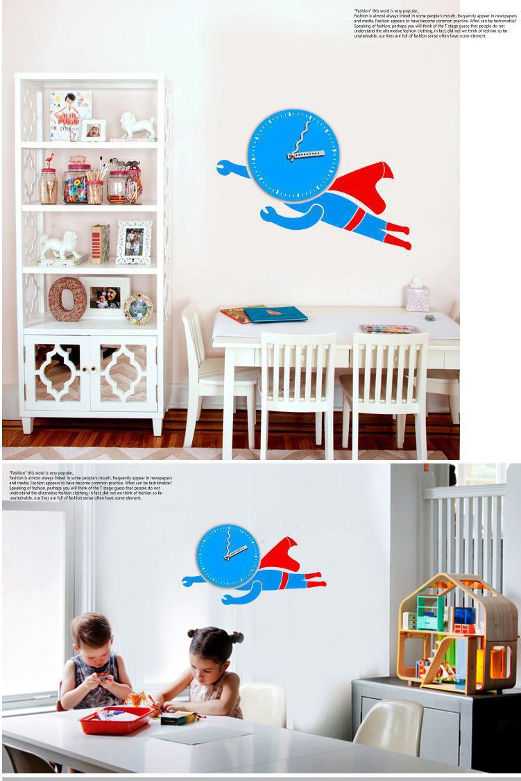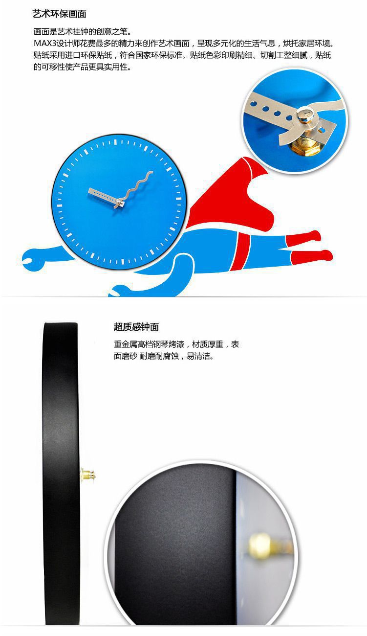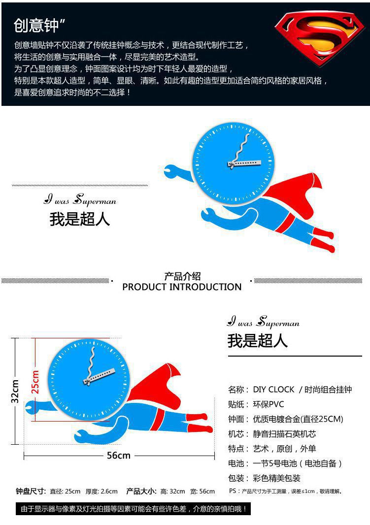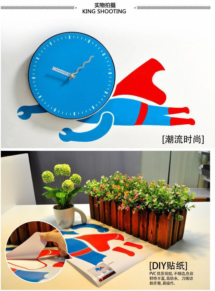藍色超人造型特色時鐘 時尚簡約卡通掛鐘 客廳臥室兒童房裝飾鐘表