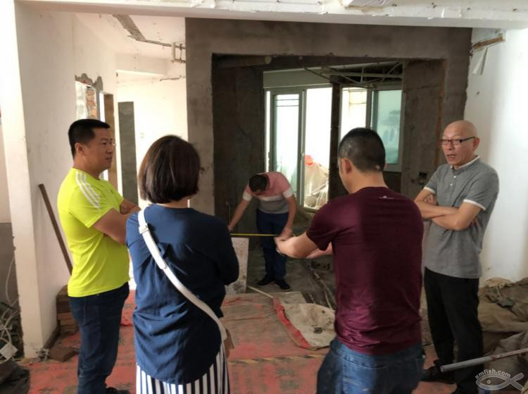 水電定位,各路高手齊聚會! 周五上午我們家終于迎來了裝修的第二階段:水電施工! 水電施工前需要做水電定位,計總約好了了十點到場開始水電定位,我們也約了科勒的師傅上門(浴缸需要在水電定位的時候讓他們工作人員指導浴缸區域需要怎么布線),還有英博門窗的曾總(超熱心的!我們原本說要測量的時候再上門來,曾總說沒關系,剛好有時間,就一起上門協商推拉門如何設計),到場的還有惠達瓷磚的設計師(也是精牌