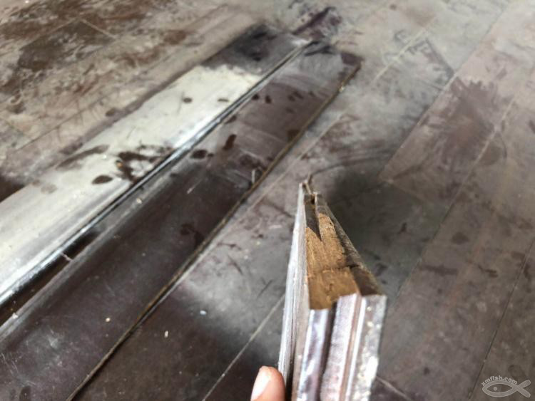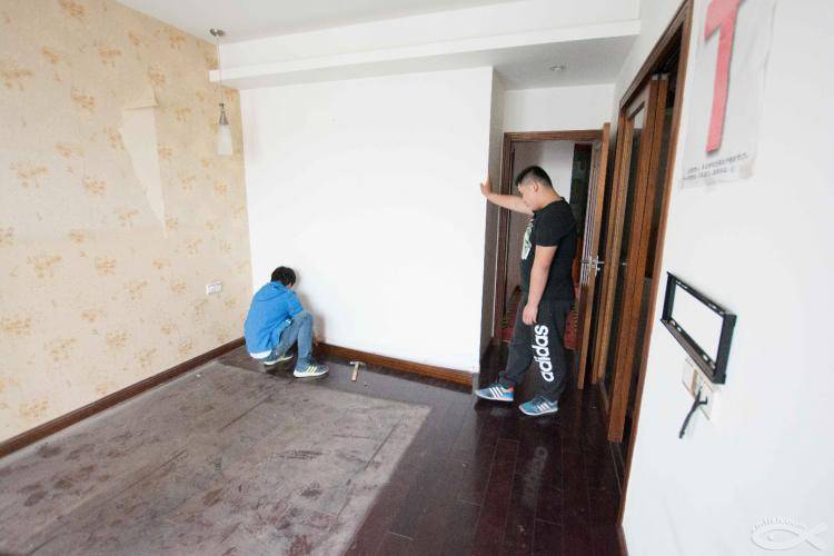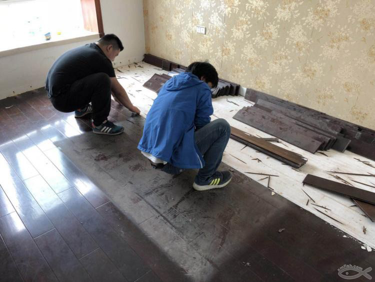 拆除木地板的工人來到現場后說:“這個木地板可能沒那么好拆呀,都是實木的,可能還是紫檀木呀!十來年了縫隙還這么小,可能有用釘子固定過,如果是釘子固定了就沒那么好拆啦!”