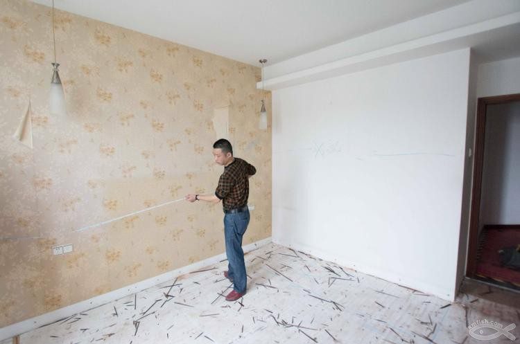 在拆的時候父皇還在與計總討論這個木地板到底要換新的還是留。